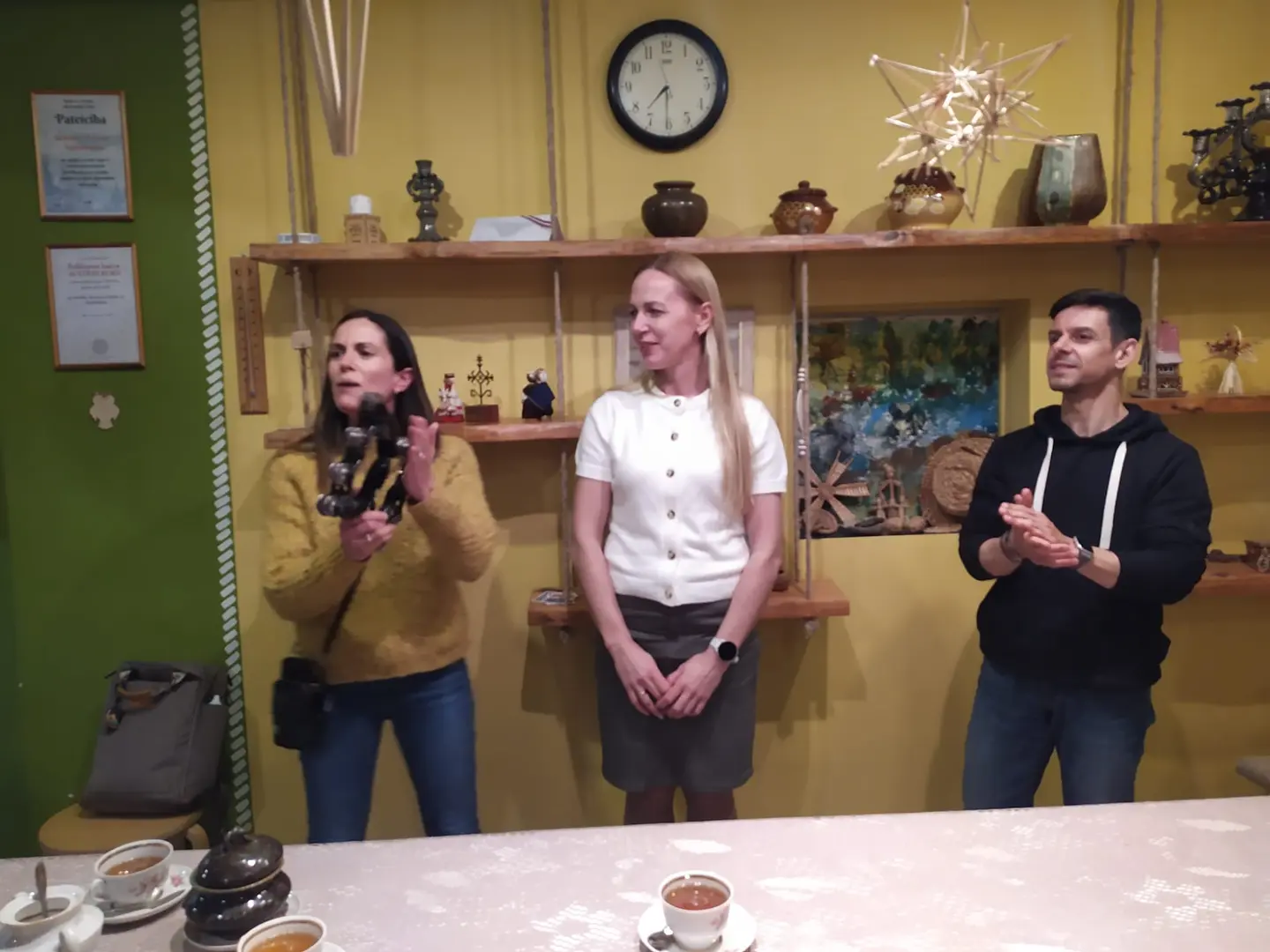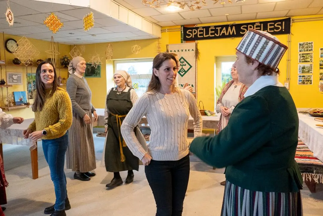 Spāņu ciemiņiem centāmies parādīt Koknesi, paldies Līvijai Reinbergai par ekskursiju Kokneses parkā, Annai Čīmai par garšīgajām pusdienām un īpašu uzmanību krodziņā “ Rūdolfs” , Ingūnai Žogotai un folkloras kopai “Urgas” par mīļu un sirsnīgu uzņemšanu Radošajā mājā. Tur iejutāmies latviskajā garā – cepām pīrāgus, dziedājām, dejojām un spēlējām kokles. Tik ļoti piepildītas, saulainas un skaistas bija šīs divas pavasara dienas.