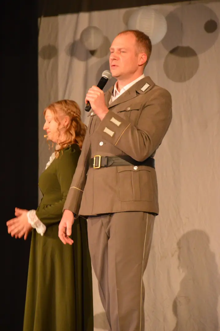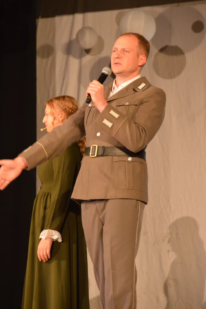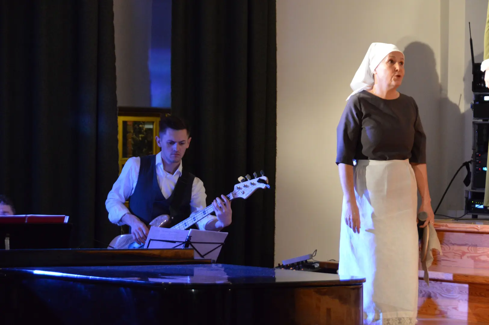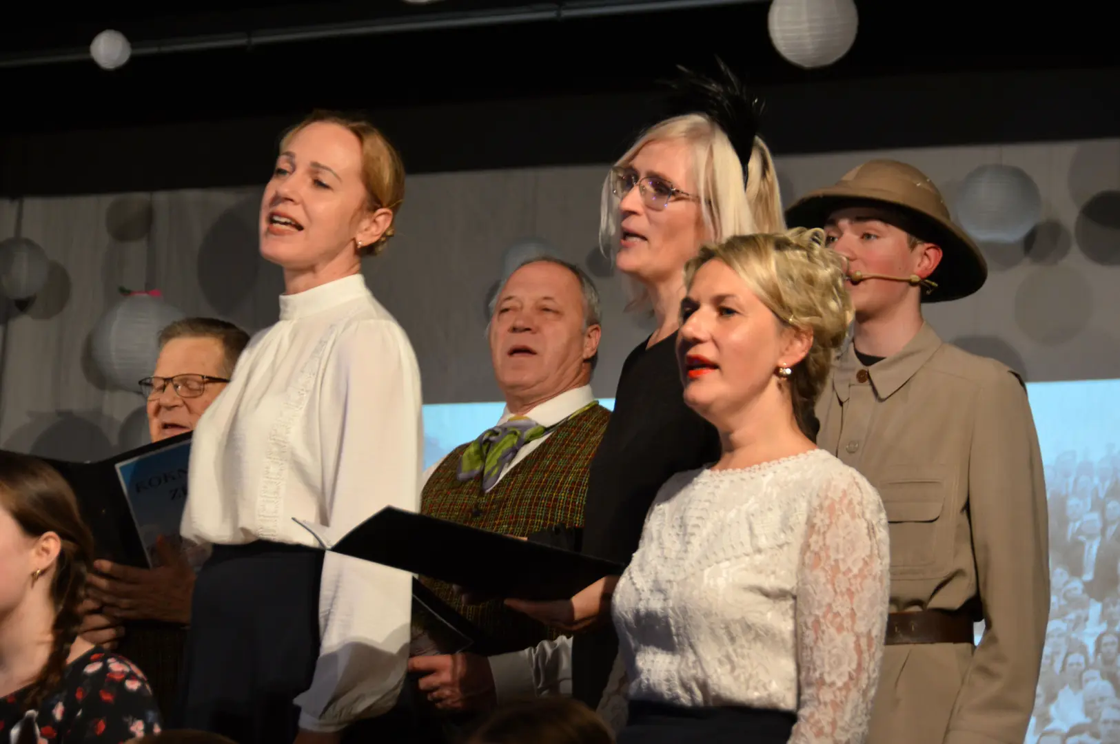 Vairākās lomās redzējām Kokneses Mūzikas skolas absolventus. Skatītājus apbūra skaistās balss īpašniece Keitija Skribāne skolotājas Elzas lomā. Gustavs Jakubovičs, kurš iejutās Rīgas zēna lomā, arī teicami pierādīja savu dziedātāja talantu. Helēnu Vildi un Alvi Voitkunski jau iepriekš iepazinām koncertuzvedumā “Pērses meitene”. Arī šajā reizē viņi savās lomās bija izcili - Alvis dziedāšanas biedrības kora diriģenta lomā, bet Helēna dziedāja pat vairākas lomas - diriģenta mīļoto meiteni, bija pazemes spociņa balss un atklāja baroneses Lēvenšternas vēstījumu. Spožas un atarktīvas gudro Kokneses vārnu lomās bija skolotājas Ilona Makareni un Gundega Ermiča. Skolotāja Lelde Kamzole-Gagaine savā “Šuvējiņas dziesmā” mūs aizveda Kokneses Jaunās pils ziedu laikos. Kokneses policista dziesmā dzirdējām Viktoru Bešmenovu, pazemes spociņa lomā iejutās Gita Birkāne, bet dziedāšanas biedrības rīcības komiteju pārstāvēja skolotāja Zane Strupāne.