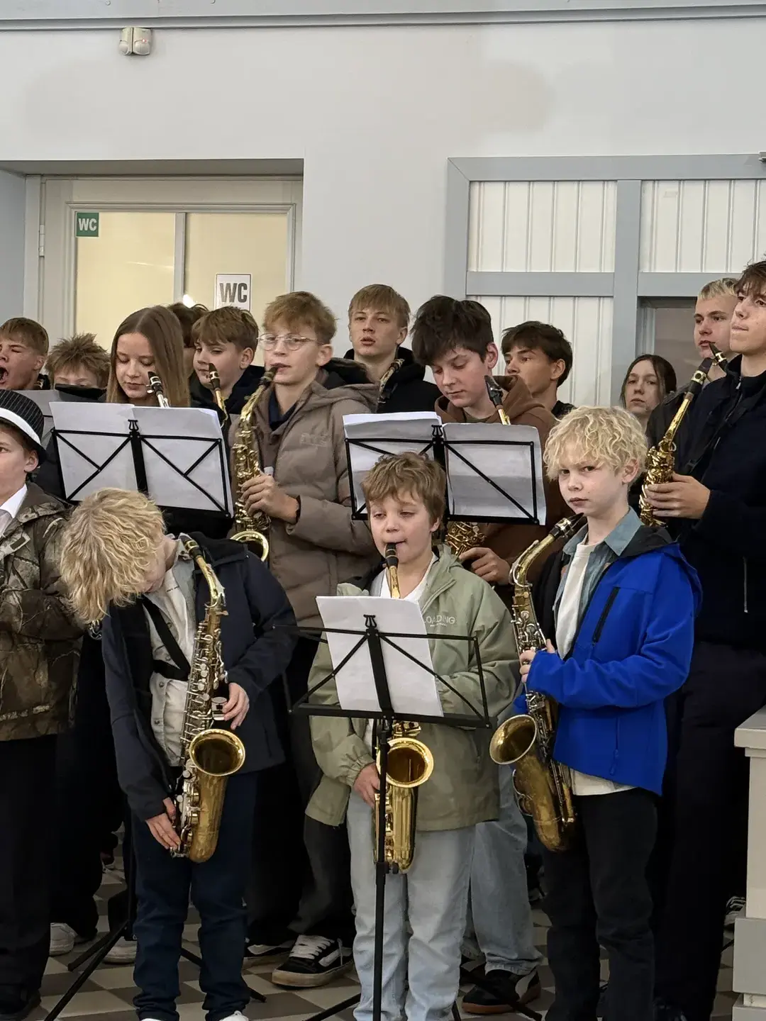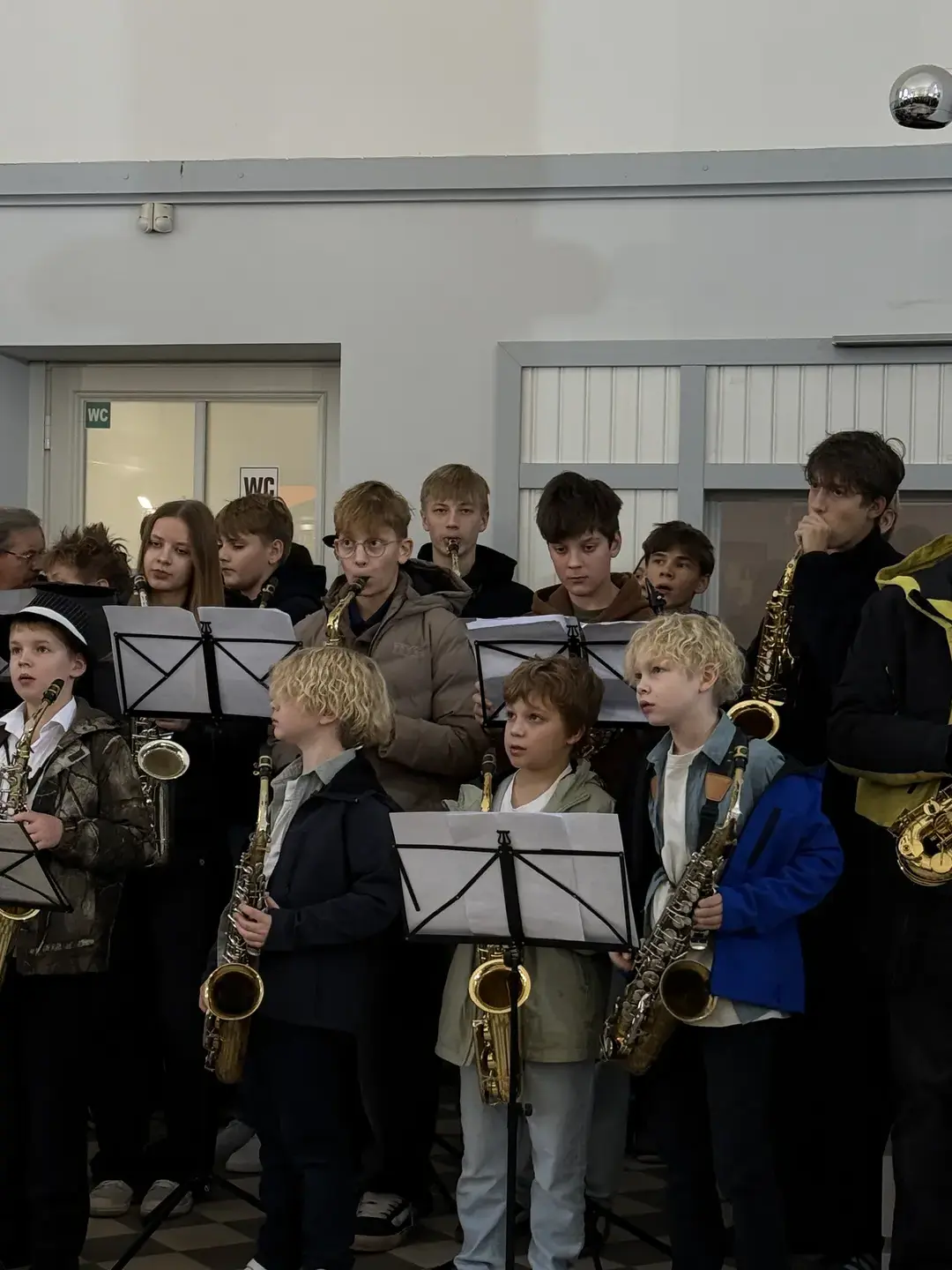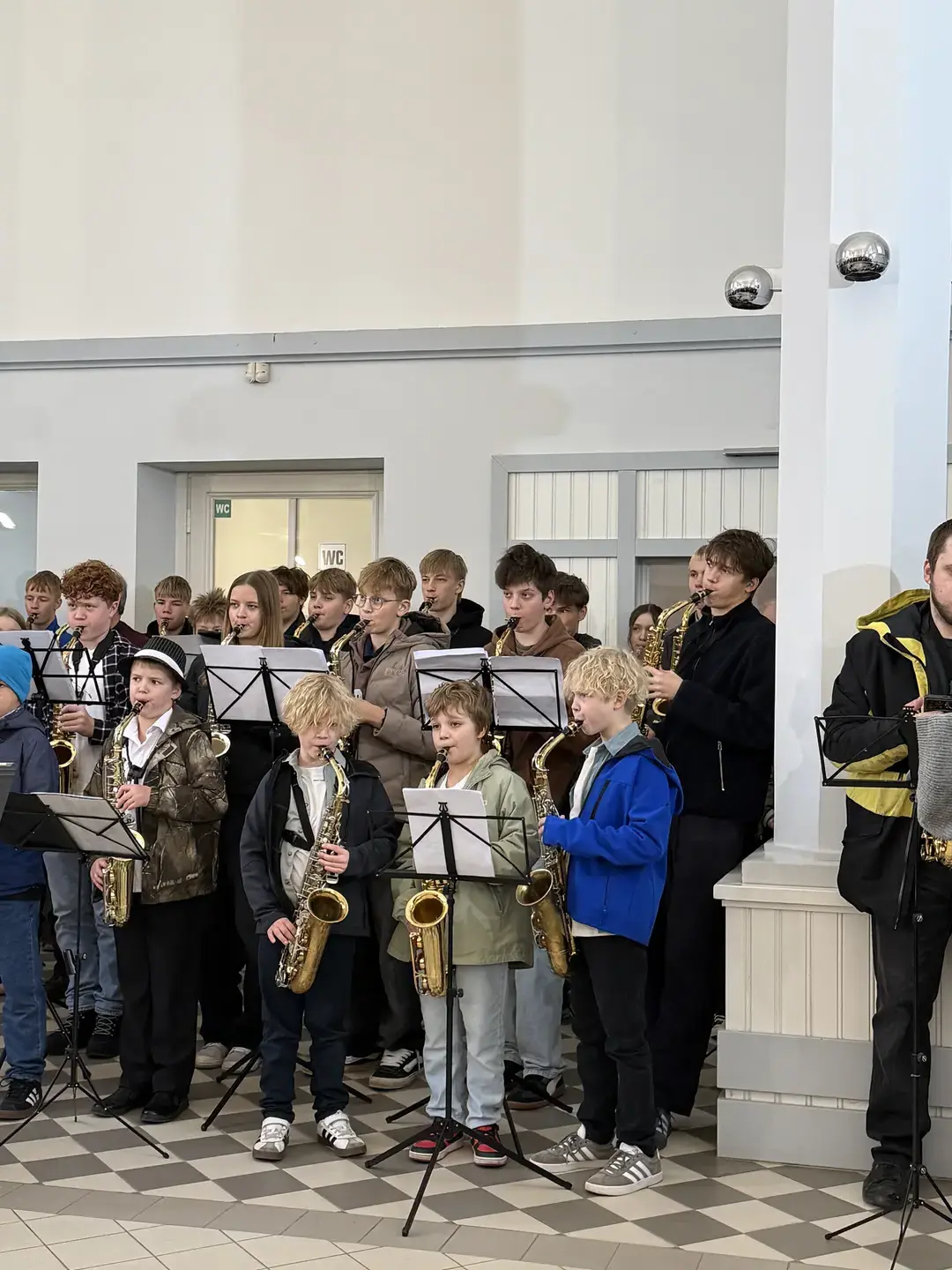 Visi saksofonisti sanāca kopā, lai sniegtu performanci Cēsu iedzīvotājiem, Cēsu dzelzsceļa stacijas ēkā!