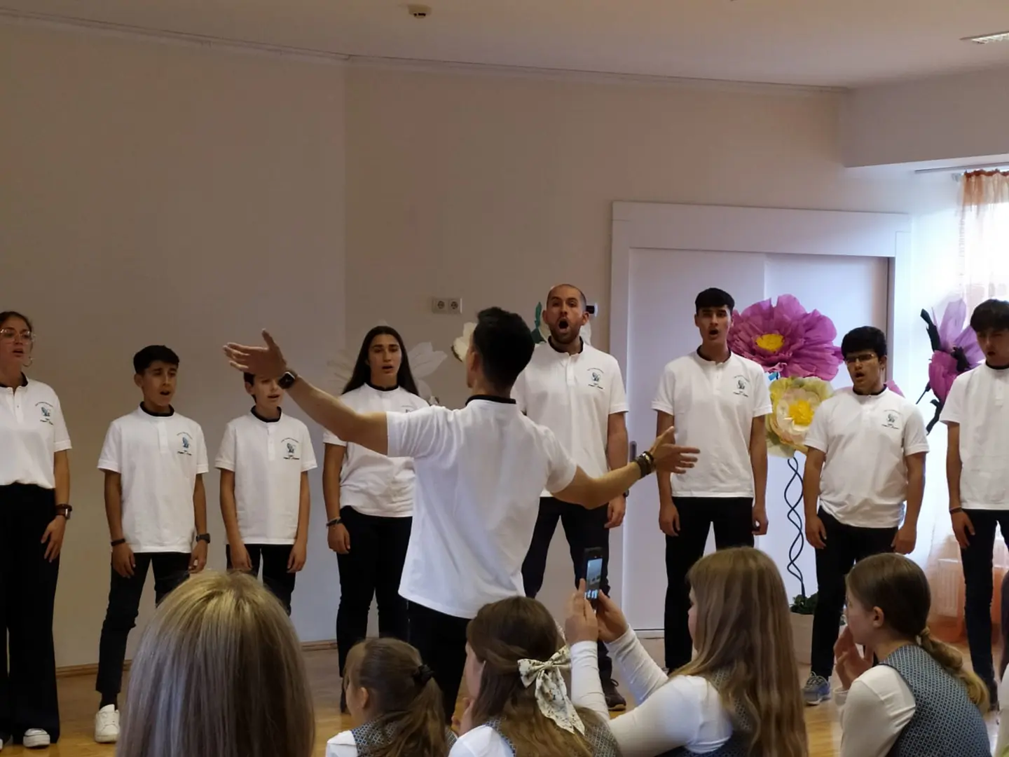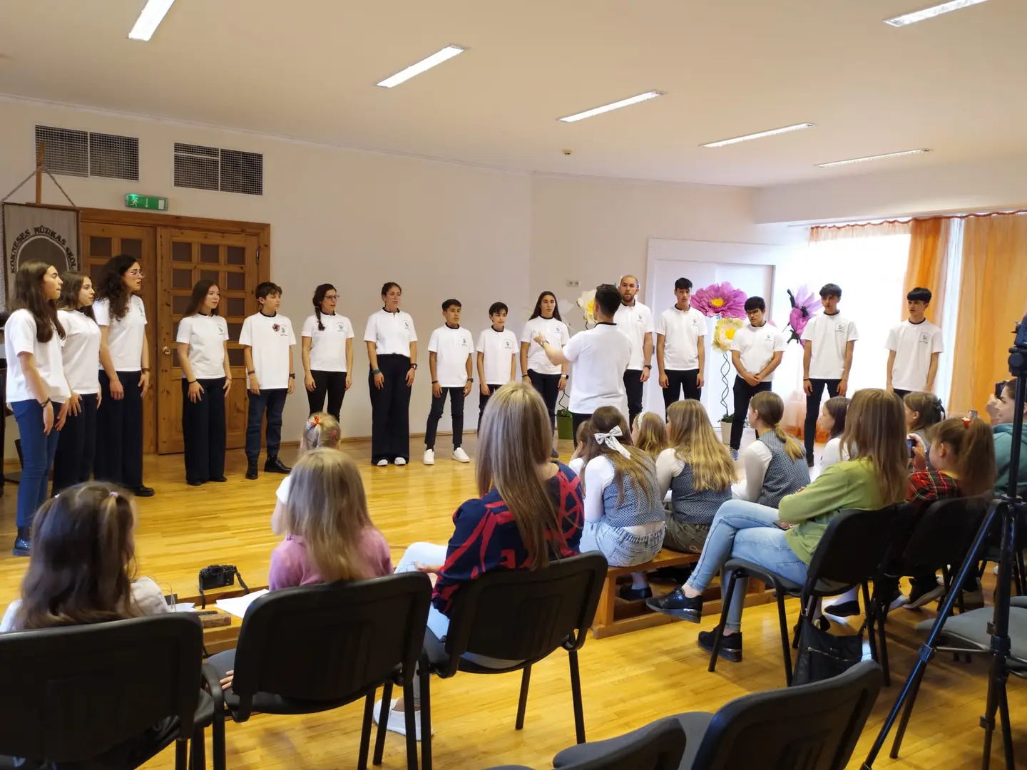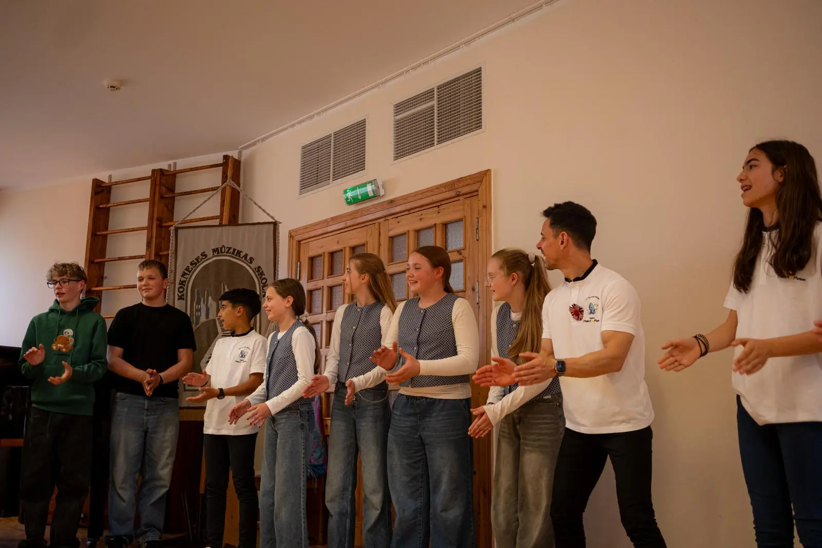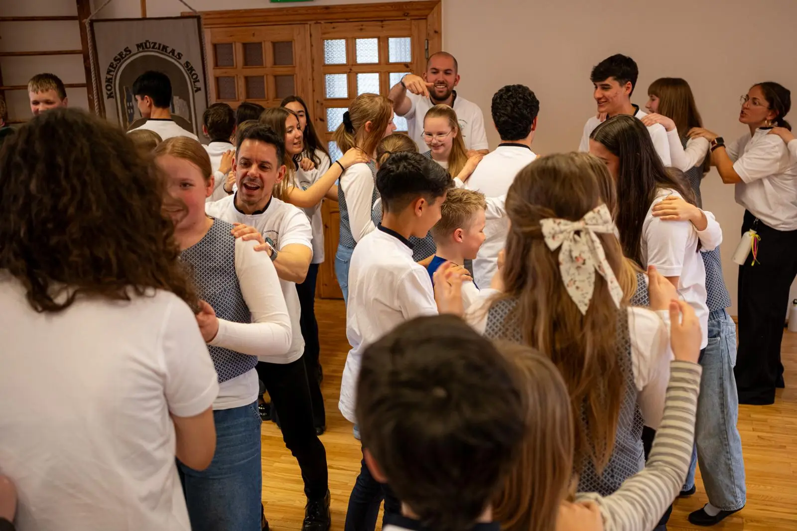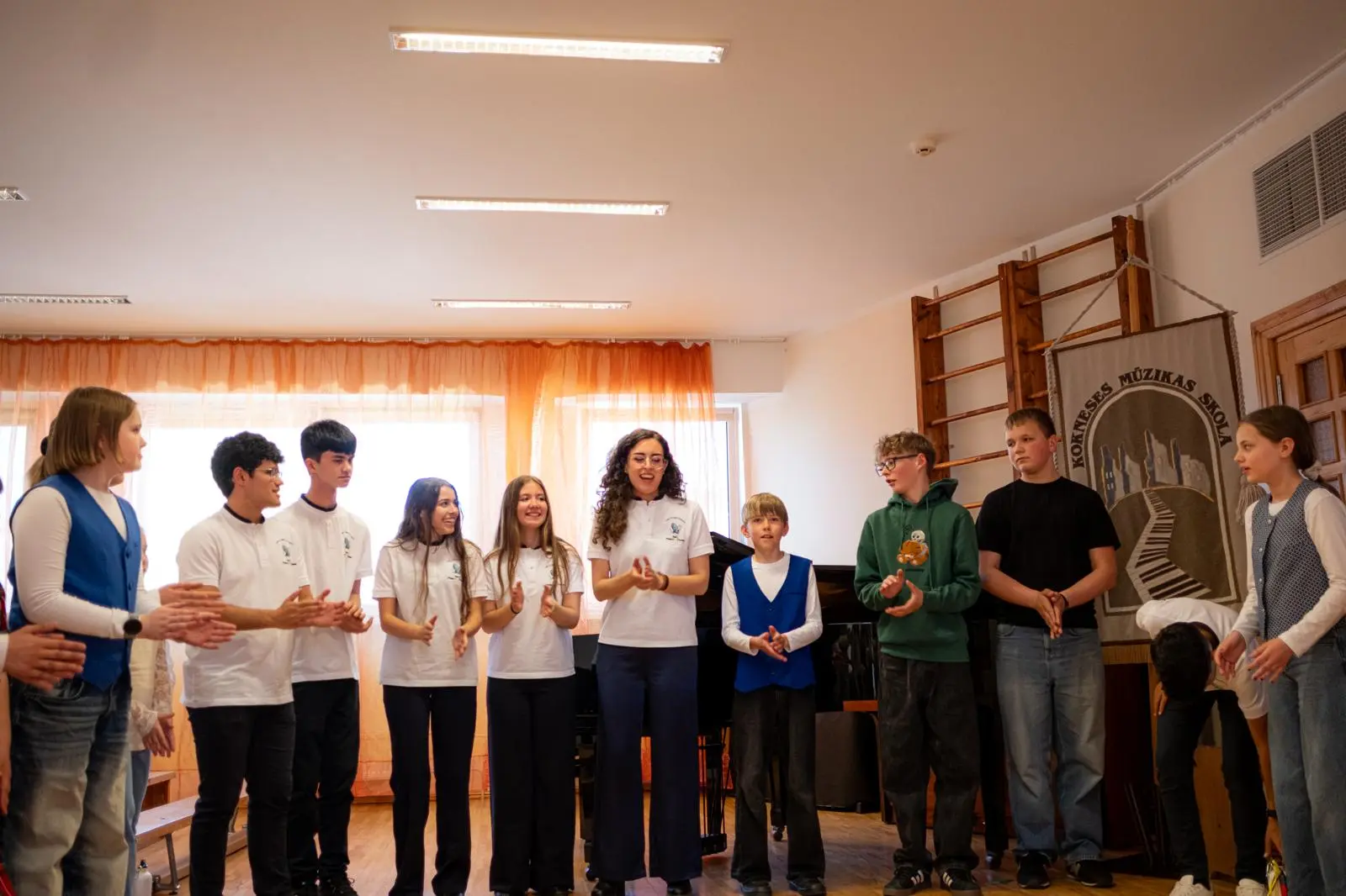 24. aprīlī Kokneses Mūzikas skolā viesojās mūsu mīļie draugi no Velvas Profesionālās mūzikas konservatorijas “Javier Perianes”. Šī , Erasmus projekta ietvaros, bija jau trešā reize Koknesē, bet šoreiz viesi bija kuplā skaitā – 12 audzēkņi vecumā no 13 līdz 20 gadiem un 4 skolotāji. Šī bija ļoti skaista un piepildīta diena. Kopīgi izstaigājām Kokneses parku, apmeklējām viduslaiku pilsdrupas un ādas aksesuāru ražotni “Dunense”. Mūs sagaidīja uzņēmuma dibinātājas Inese un Kristīne Kāpiņas un novadīja praktiskās meistarklases spāņu valodā. Garšīgi paēdām krodziņā “Rūdolfs”, kur īpašniece Anna Čīma mums bija uzklājusi galdu. Bet pēcpusdienā izskanēja šī Erasmus projekta galvenais mērķis – mūsu kopīgais koncerts. Muzicēja gan mūsējie, gan spāņu instrumentālisti un vokālisti. Muzicēja arī skolotāji - klavierduets Sandra Bernal un Narciso Perera Antunez. Bet kā saldais ēdiens pašus audzēkņus un klausītājus iepriecināja koru mūzika. Ciemiņi dziedāja sarežģītu madrigāli a capella, arī dziesmu, kuras laikā redzējām flamenko deju. Viņi mūs ļoti pārsteidza ar Lauras Jēkabsones dziesmu latviešu valodā “Labāk ļaudis padziedam”. Bet koncerta izskaņā mūsu skolas vecāko klašu koris un ciemiņi kopkorī nodziedāja divas dziesmas – Elizabetes Batņas “Veselums” latviešu valodā, diriģēja Lelde Kamzole - Gagaine un spāņu komponistes Evas Ugaldes dziesmu “Kuku ue” spāņu valodā, kurā izmantoti āfrikāņu tradicionālie ritmi un dziedāšanas maniere, diriģēja atraktīvais spāņu diriģents Narciso Perera Antunez. Pēc koncerta kopā ar draugiem kopīgi muzicējām brīvā stilā populāros hitus gan angļu, gan spāņu, gan itāļu valodās.