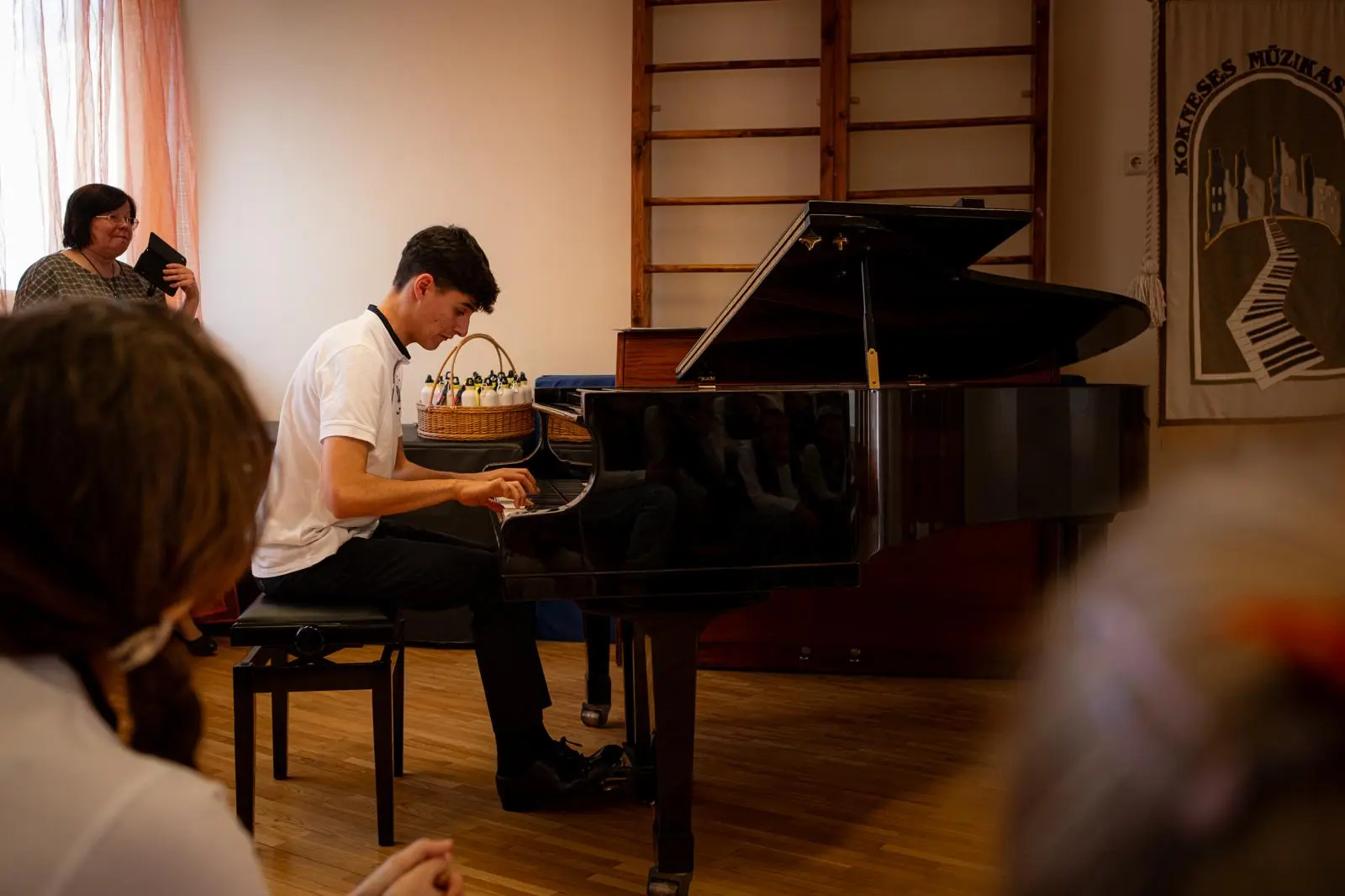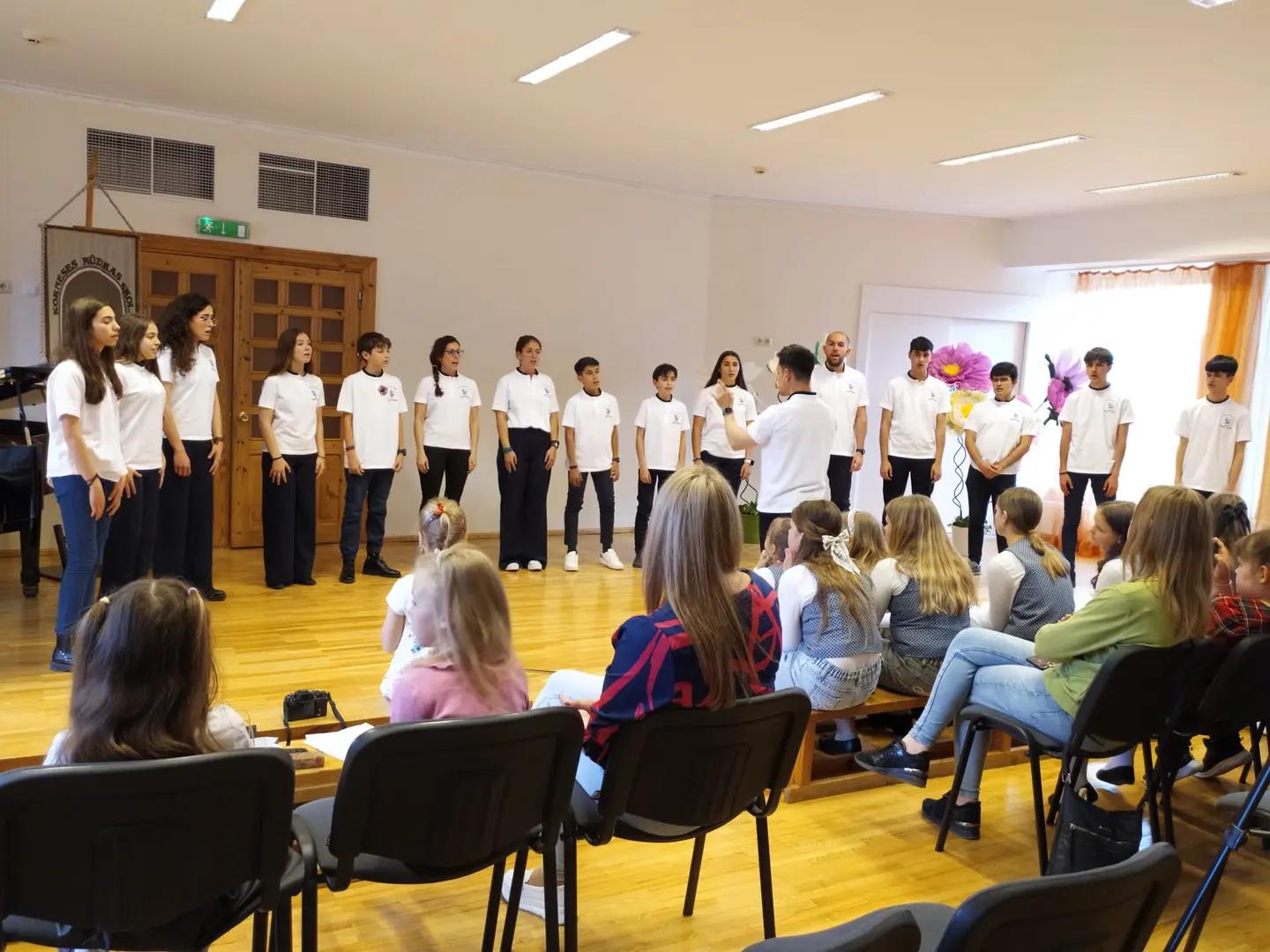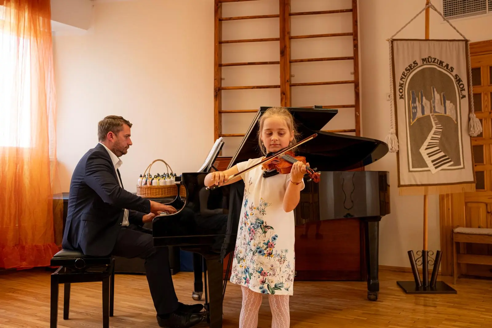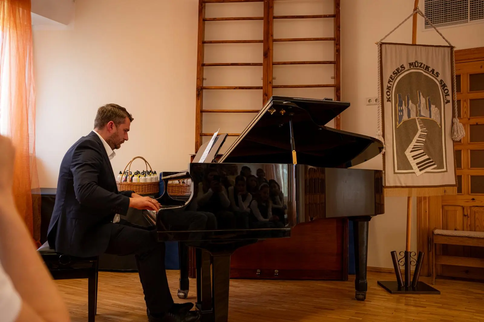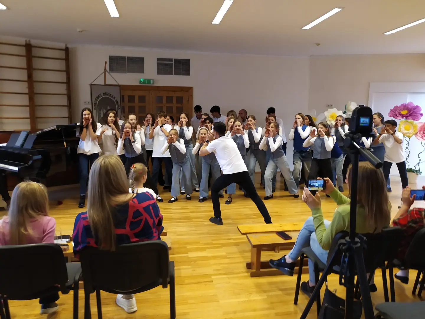 24. aprīlī Kokneses Mūzikas skolā viesojās mūsu mīļie draugi no Velvas Profesionālās mūzikas konservatorijas “Javier Perianes”. Šī , Erasmus projekta ietvaros, bija jau trešā reize Koknesē, bet šoreiz viesi bija kuplā skaitā – 12 audzēkņi vecumā no 13 līdz 20 gadiem un 4 skolotāji. Šī bija ļoti skaista un piepildīta diena. Kopīgi izstaigājām Kokneses parku, apmeklējām viduslaiku pilsdrupas un ādas aksesuāru ražotni “Dunense”. Mūs sagaidīja uzņēmuma dibinātājas Inese un Kristīne Kāpiņas un novadīja praktiskās meistarklases spāņu valodā. Garšīgi paēdām krodziņā “Rūdolfs”, kur īpašniece Anna Čīma mums bija uzklājusi galdu. Bet pēcpusdienā izskanēja šī Erasmus projekta galvenais mērķis – mūsu kopīgais koncerts. Muzicēja gan mūsējie, gan spāņu instrumentālisti un vokālisti. Muzicēja arī skolotāji - klavierduets Sandra Bernal un Narciso Perera Antunez. Bet kā saldais ēdiens pašus audzēkņus un klausītājus iepriecināja koru mūzika. Ciemiņi dziedāja sarežģītu madrigāli a capella, arī dziesmu, kuras laikā redzējām flamenko deju. Viņi mūs ļoti pārsteidza ar Lauras Jēkabsones dziesmu latviešu valodā “Labāk ļaudis padziedam”. Bet koncerta izskaņā mūsu skolas vecāko klašu koris un ciemiņi kopkorī nodziedāja divas dziesmas – Elizabetes Batņas “Veselums” latviešu valodā, diriģēja Lelde Kamzole - Gagaine un spāņu komponistes Evas Ugaldes dziesmu “Kuku ue” spāņu valodā, kurā izmantoti āfrikāņu tradicionālie ritmi un dziedāšanas maniere, diriģēja atraktīvais spāņu diriģents Narciso Perera Antunez. Pēc koncerta kopā ar draugiem kopīgi muzicējām brīvā stilā populāros hitus gan angļu, gan spāņu, gan itāļu valodās.